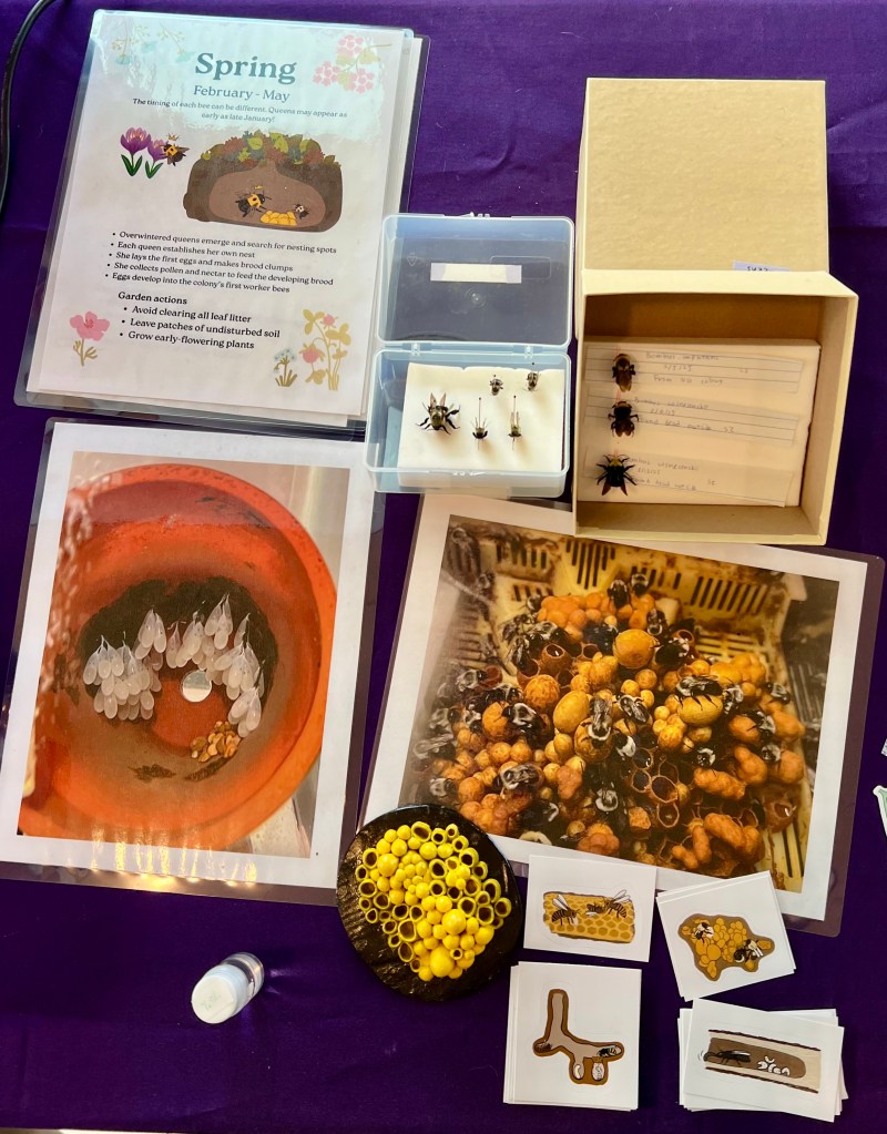 Stephanie has been out in the community spread the buzz about bumblebees! She has helped organize fun events at local community gardens where neighbors can learn about these amazing animals up close. Check out her handmade models of bumblebee nests and mounted bumblebee specimens–engaging and effective teaching tools!